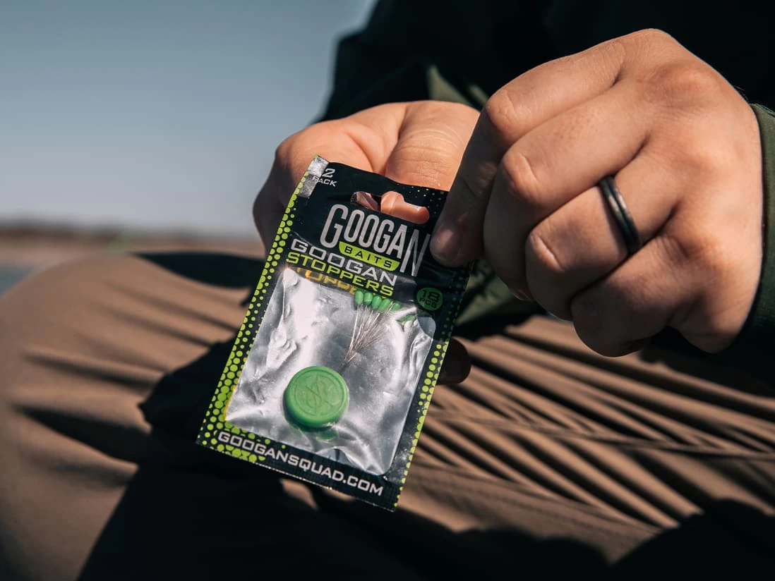 Installing these puppies is super easy with stoppers mounted on wire prongs. When you’re punching, flipping, or Texas rigging, these are the move. Your favorite Squad logo on the finger tab, available in black or hi-vis Googan green.