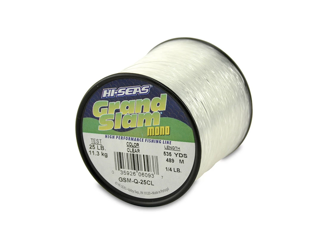 Hi-Seas Grand Slam Mono Line is your perfect choice for an all-purpose monofilament, with its unique combination of supple feel, knot strength, diameter, and abrasion resistance. That supple feel is key when readying rigs for action, and quick re-rigging. It’s also tough enough to take you from deep rigs, trolling open passes, to tossing plugs in the mangroves.